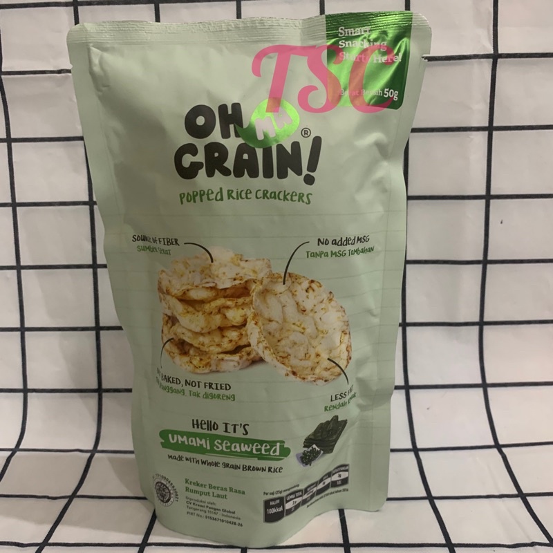 Oh Ma Grain! Popped Rice Cracker Umami Seaweed / Rumput Laut / Whole Grain Brown Rice