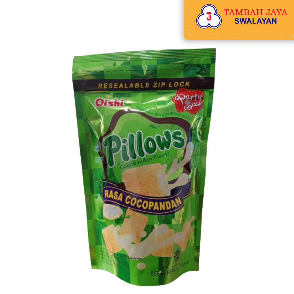 OISHI PILLOWS COCOPANDAN merupakan cemilan gurih dan nikmat dengan rasa cocopandan sangat cocok di nikmati saat santai, tekstur yang lembut dengan perpaduan rasa yang manis selalu sukses bikin nagih. Bentuk yang unik dengan rasa cream manis di dalamnya, menjadikan Oishi Snack Pillow tidak pernah bosan ketika di konsumsi.