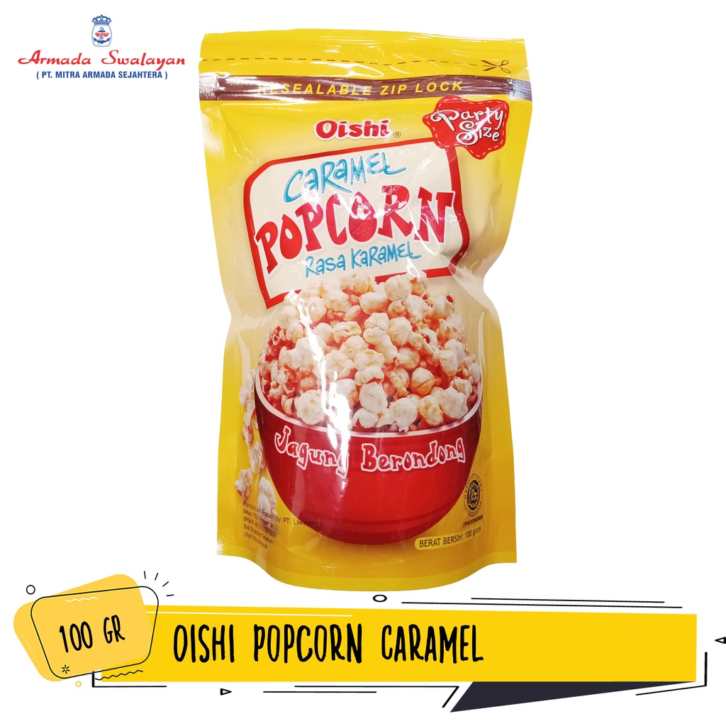 Oishi Popcorn 100gr merupakan camilan siap makan persembahan dari Oishi. Camilan popcorn persembahan Oishi ini terbuat dari jagung pilihan yang diolah bersama krim karamel dan cokelat yang lezat. Ideal dinikmati saat menonton film, mengobrol bersama sahabat, ataupun sebagai teman perjalanan. Popcorn Oishi hadir dalam kemasan bag berisi 100 gram yang dilengkapi dengan resealable zip.