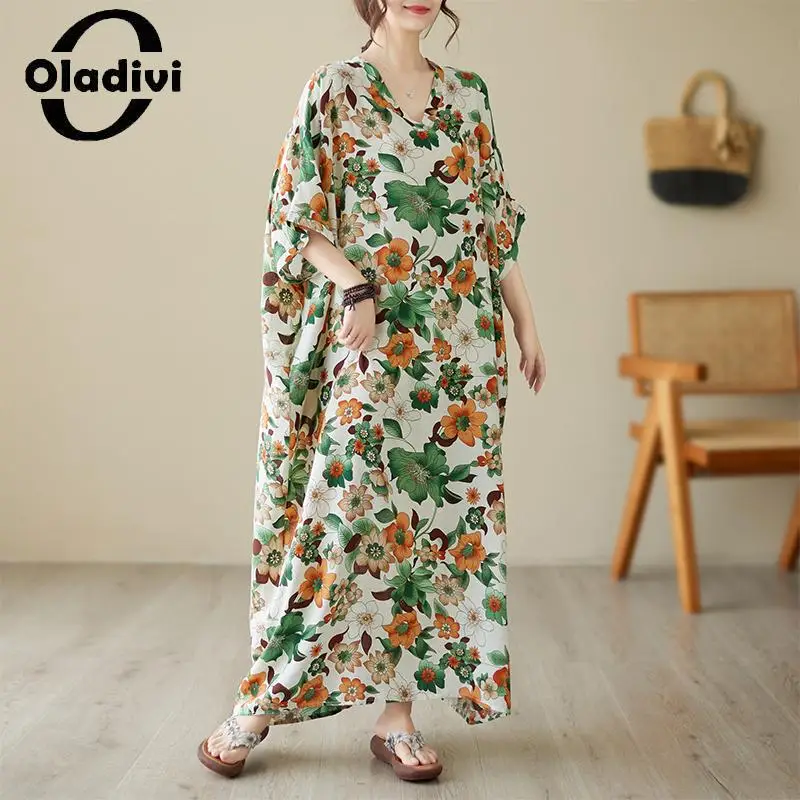 Oladivi модное женское богемное пляжное платье с цветочным принтом 2023 летние длинные платья большого размера женские туники большого размера 8XL 9XL 5560
