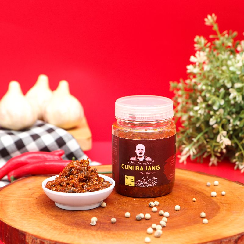 Om.Sambal merupakan produk sambal dengan kualitas premium. Dibuat setiap hari sehingga selalu fresh. Tanpa pengawet maupun pewarna buatan. Variasi sambal Cumi Rajang merupakan produk unggulan yang dibuat dengan melalui banyak tahap dan uji coba. Berbeda dengan sambal cumi pada umumnya, Om.Sambal Cumi Rajang menggunakan baby cumi yang dicincang sedikit halus yang diolah bersamaan dengan cabai, bumbu, dan rempah pilihan sehingga menghasilkan sambal yang enak dengan rasa khas sambal cumi milik Om.Sambal. Yuk cobain sensasi makan sambal beneran!