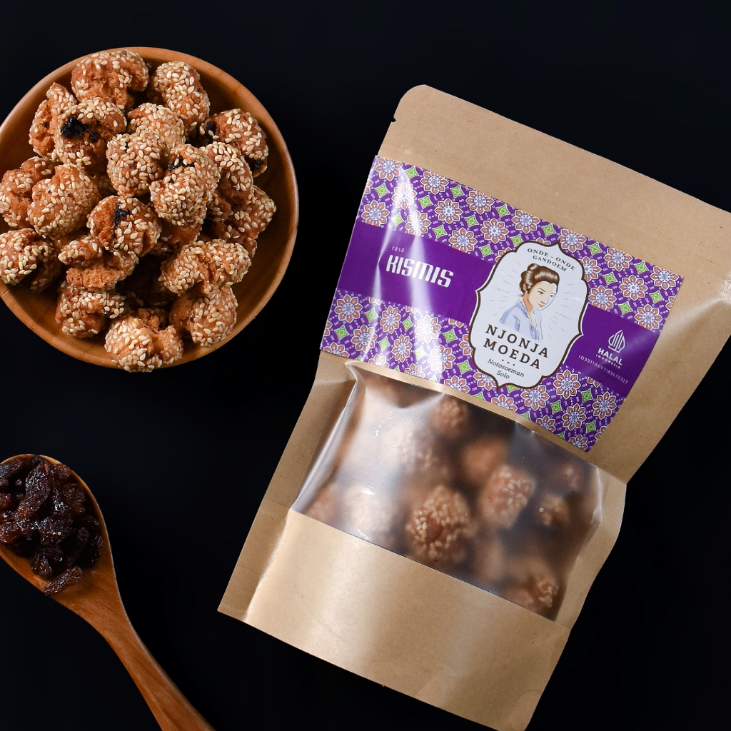 Satu-satunya variant onde-onde Njonja Moeda yang memiliki rasa FRUITY saat dinikmati. Warnanya sedikit lebih gelap jika dibandingkan dengan rasa Klasiek, namun perpaduan rasa kue ini yang manis dan gurih dikombinasikan dengan kismis (raisin) menjadikan rasa kue ini menjadi sedikit lebih asam. Kami menggunakan kismis utuh yang dicampurkan ke dalam adonan (tidak dihaluskan) sehingga rasa kismis yang asli tidak hilang pada saat disantap.