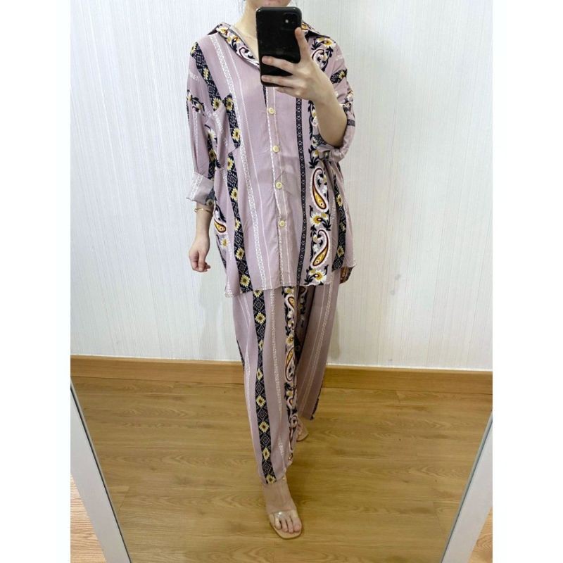 Bahan Rayon Premium, Super Adem dan Sangat Nyaman Dipakai. Atasan Kancing Depan Full Hidup dan Lengan Panjang. Celana Pinggang Full Karet.