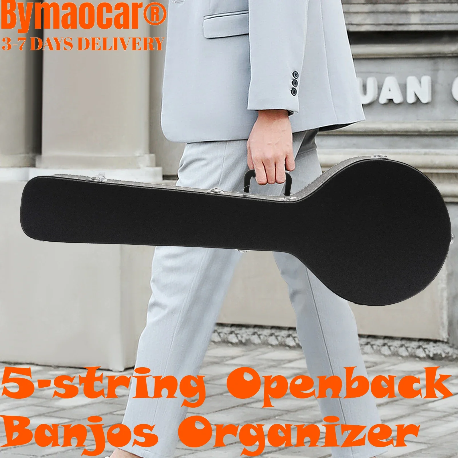 One-piece PU Organizer For Openback Banjos (41.34 Inches) With A Safety Lock With A Key, Hardshell 5-string Case Black Bag