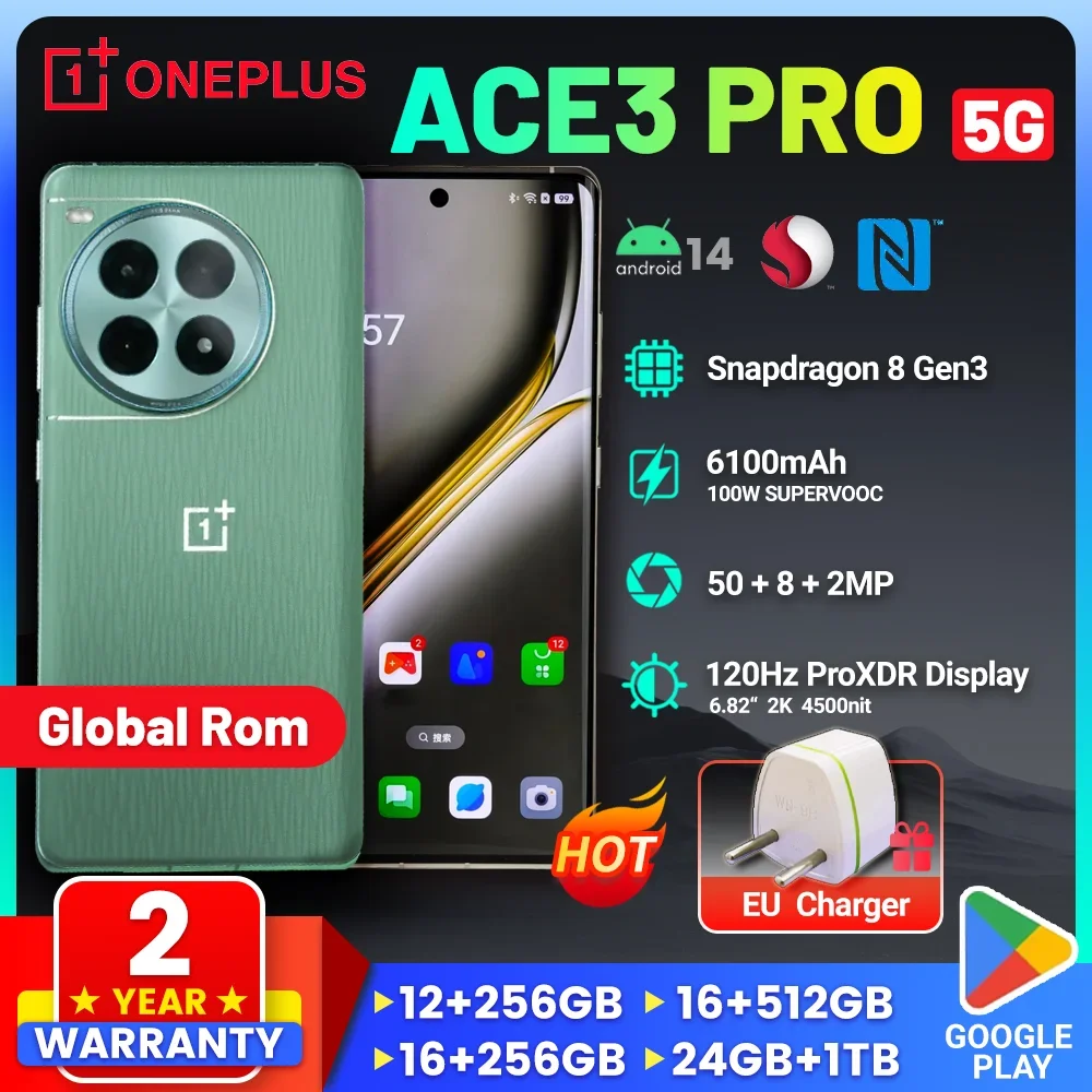 OnePlus ACE 3 Pro с глобальной прошивкой, Snapdragon 8 Gen 3, основная камера Sony 50 МП, аккумулятор 6100 мАч, 100 Вт, SUPERVOOC 6,78, 120 Гц, AMOLED, IP65
