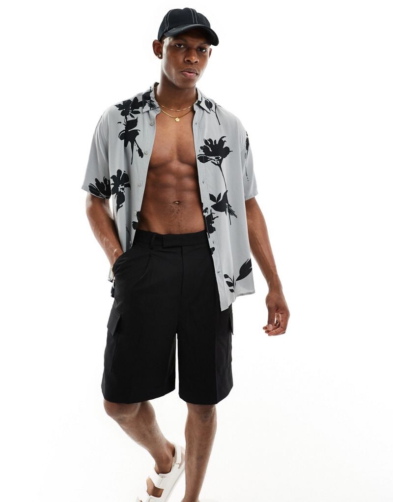 Only & Sons – Серая рубашка свободного кроя из вискозы с цветочным узором