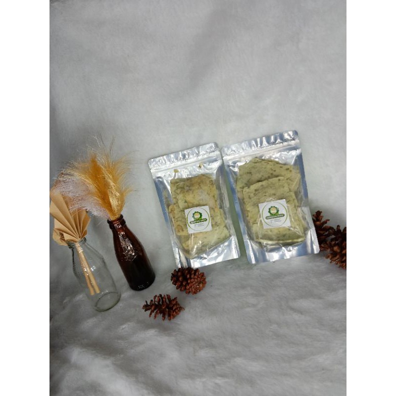 Opak kucai dengan bumbu rumput laut yang gurih dikemas dalam kemasan pouch yang kedap udara sehingga menjaga rasa dan kerenyahan dari opak kucai ini. Enak dan dijamin nagih