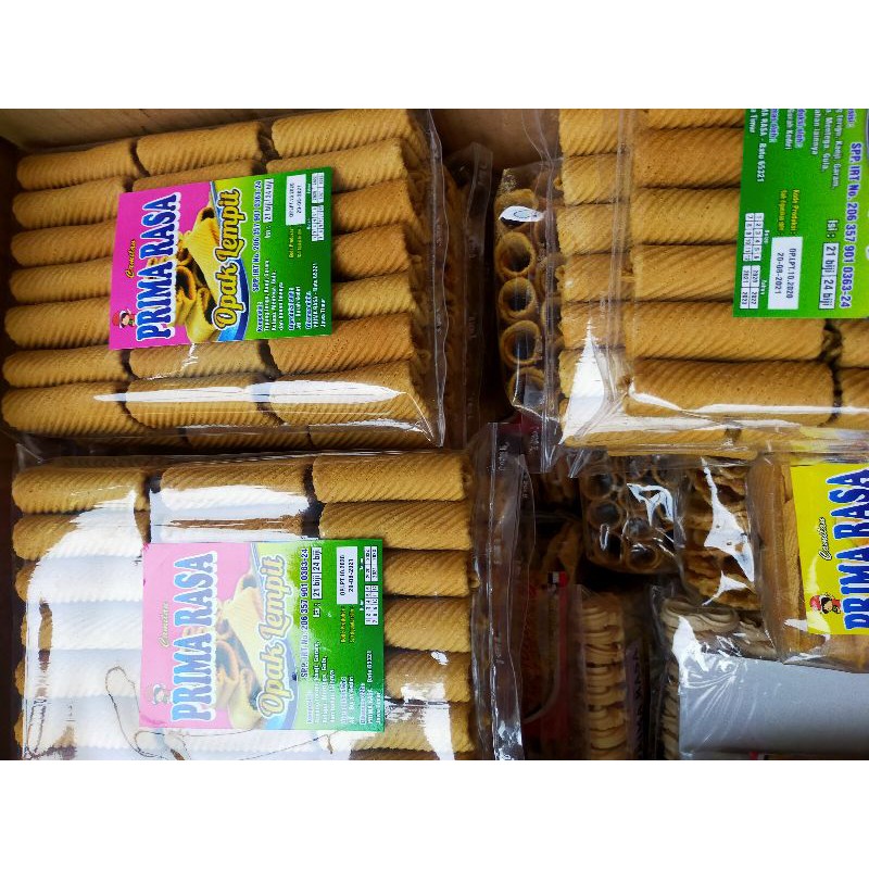Opak Lempit sangat renyah dengan rasa manis dan cirihas aroma kelapa dengan komposisi bahan tepung teriku, mentega, kelapa, gula dan bahan manisnya. Dikemas di Batu-Malang dan halal.