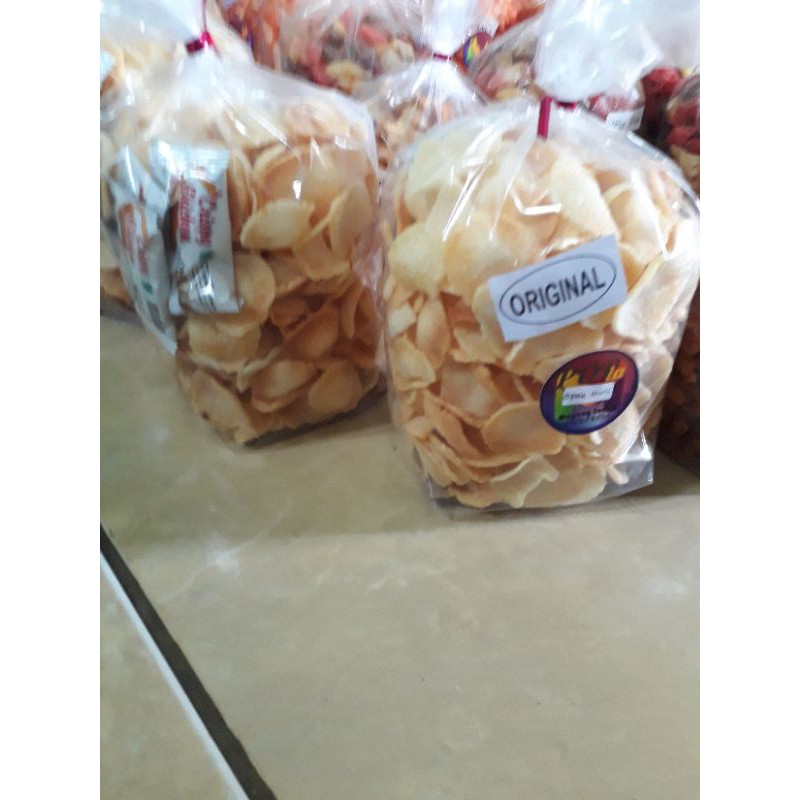 Opak singkong mini rasa original yg kres cocok buat camilan dan lauk makan..