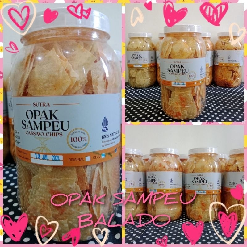 Opak Sampeu Sutra terbuat dari singkong pilihan dan di campur dengan bahan terbaik. Di iris tipis kemudian di goreng dengan minyak goreng sehat. Dengan tekstur lembut dan rasa yang gurih. Di nikmati sebagai cemilan.