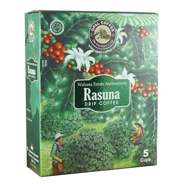 Opal Coffee Rasuna Drip Coffee merupakkan salah satu hasil dari perkebunan yang terkenal di sumatra utara milik PT Opal Coffee Indonesia yaitu Wahana Estate. Rasuna sendiri sangat dikenal baik oleh para kalangan pengiat coffee roastery karena rasanya yang enak dan high-acidity.