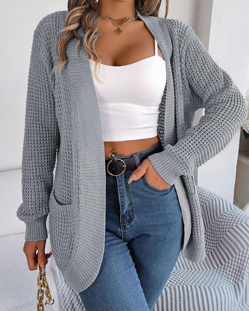 Open Front Pocket Design Knit Cardigan, Gray
