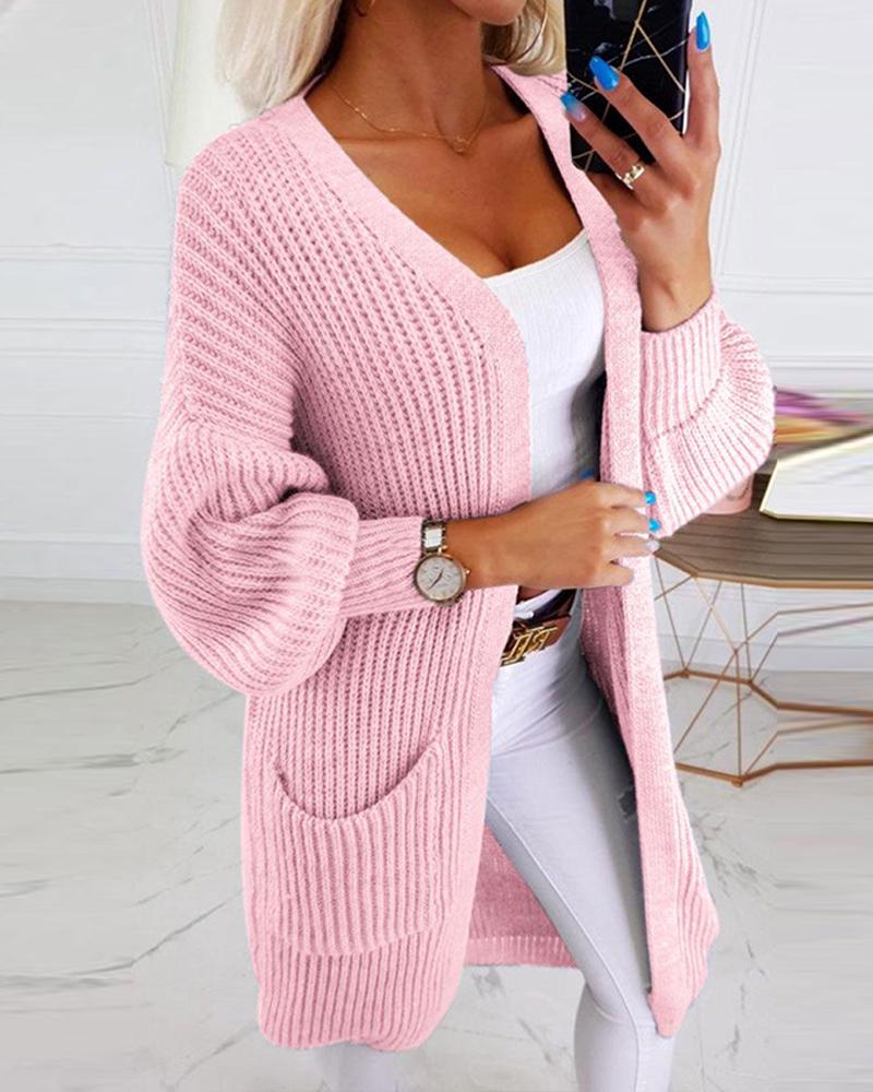 Open-Front Ribbed Knit Casual Cardigan, Pink