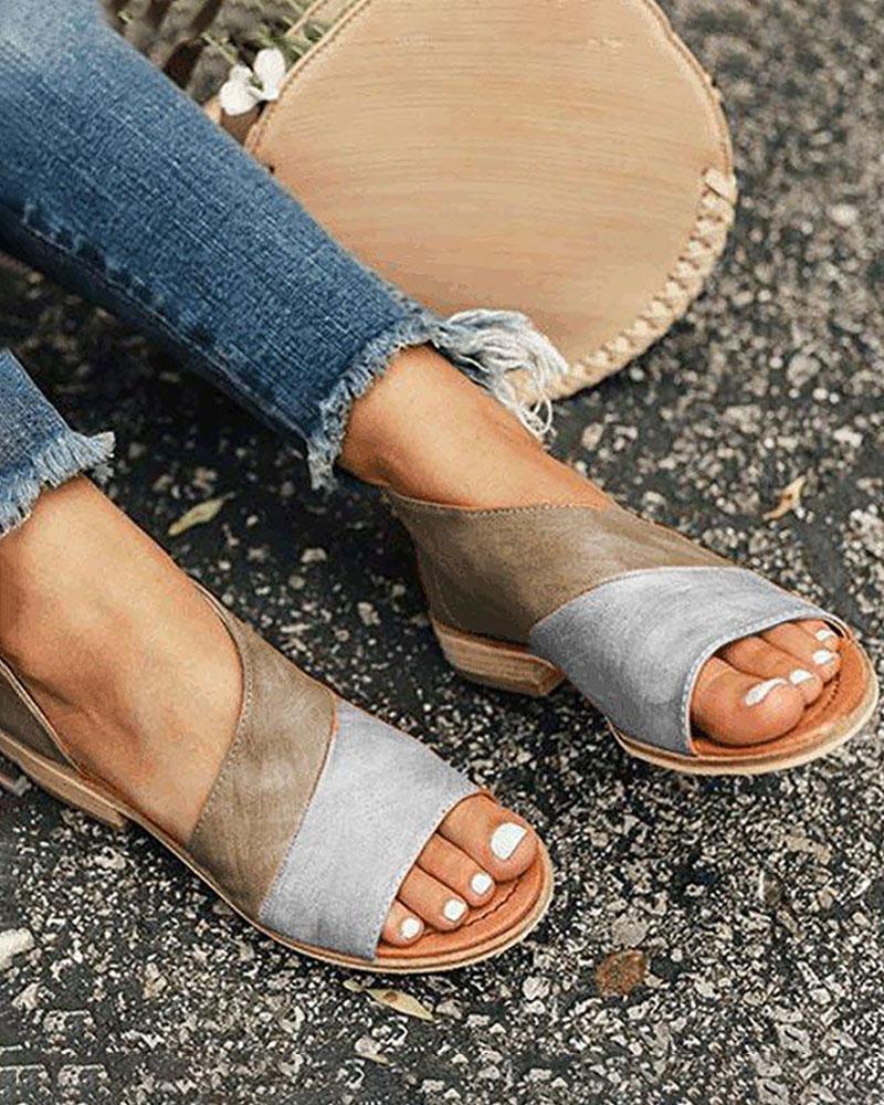 Open Toe Colorblock Insert Cutout Sandals, Gray