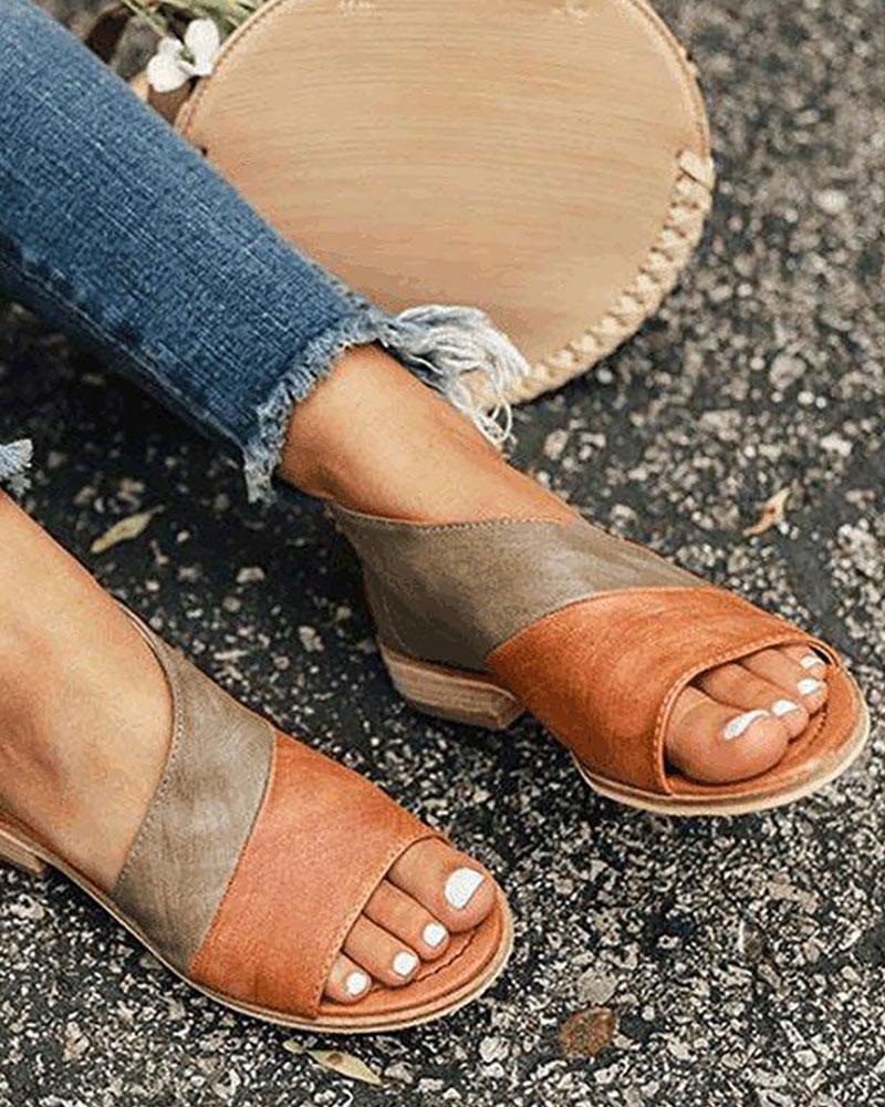 Open Toe Colorblock Insert Cutout Sandals, Orange
