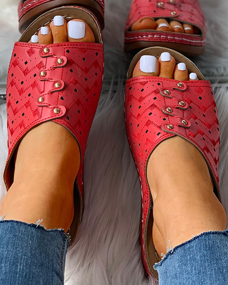 Open Toe Hollow Out Flat Sandals, Red