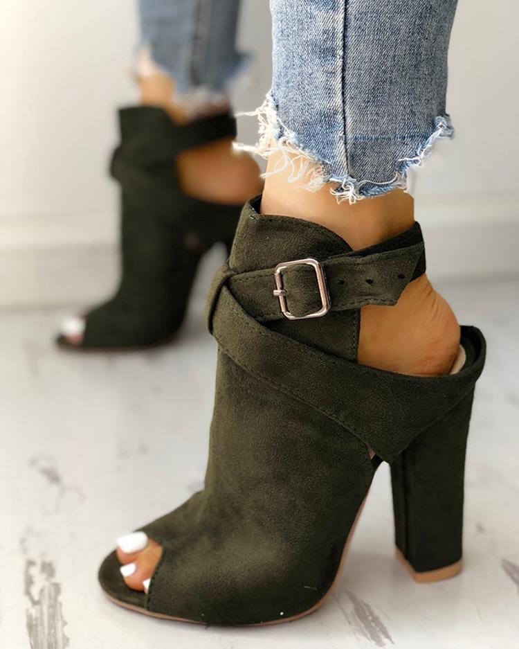 Open Toe Slingback Chunky Heeled Pumps, Army green