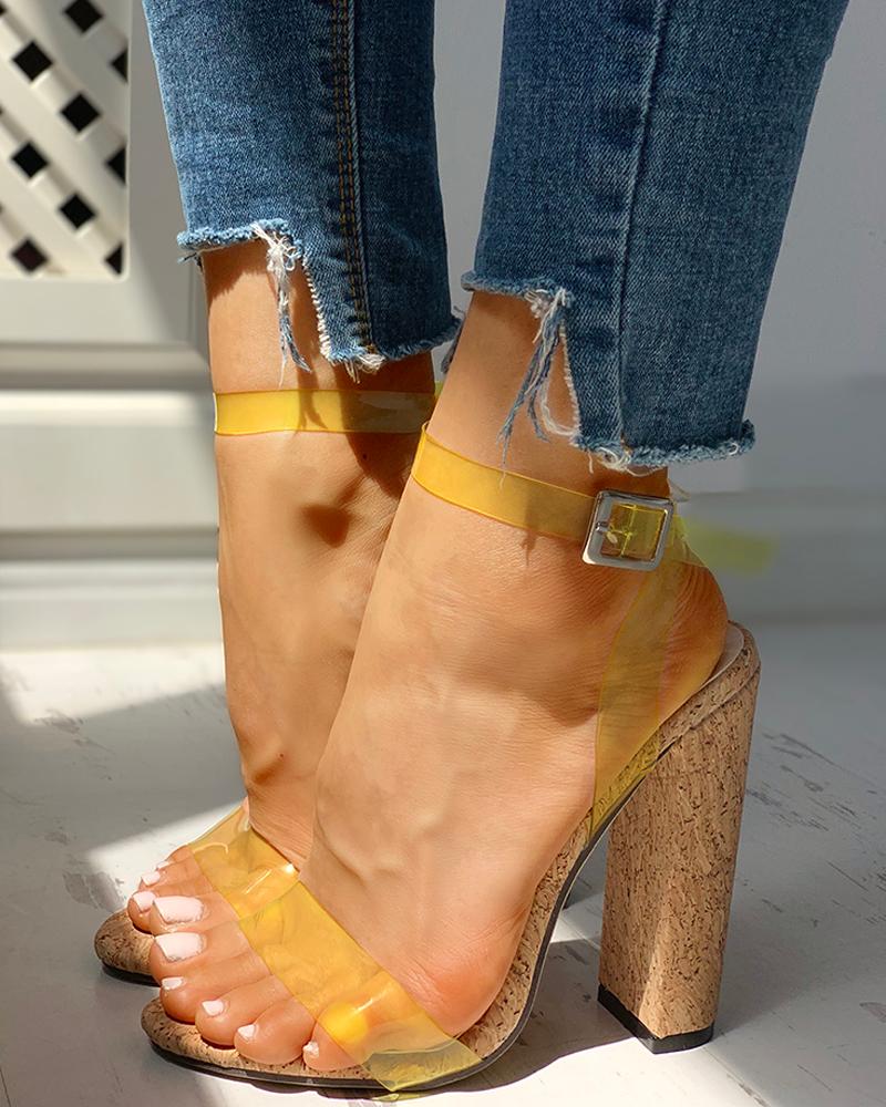 Open Toe Transparent Strap Chunky Heeled Sandals, Yellow