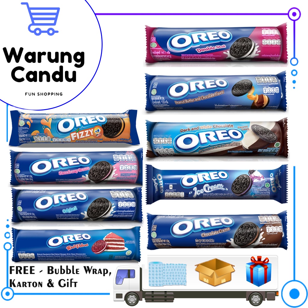 OREO merupakan makanan ringan berupa biskuit sandwich yang hadir untuk melengkapi saat bersantai Anda. Dibuat dengan memadukan biskuit yang empuk dan renyah dengan krim rasa cokelat berwarna hitam dan putih. Perpaduan tersebut menjadikan camilan ini terasa unik, lezat, dan banyak disukai oleh anak-anak hingga dewasa. Ideal dinikmati bersama susu favorit Anda di sela waktu bersantai.