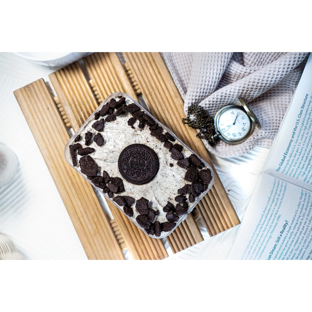 Remahan biskuit oreo yang sangat disukai oleh semua orang dipadukan dengan lembutnya adonan cheesecake home made yang dicampur remahan biskuit oreo dan kepingan biskuit oreo sebagai toping menghasilkan rasa yang melting, creamy, manis dimulut