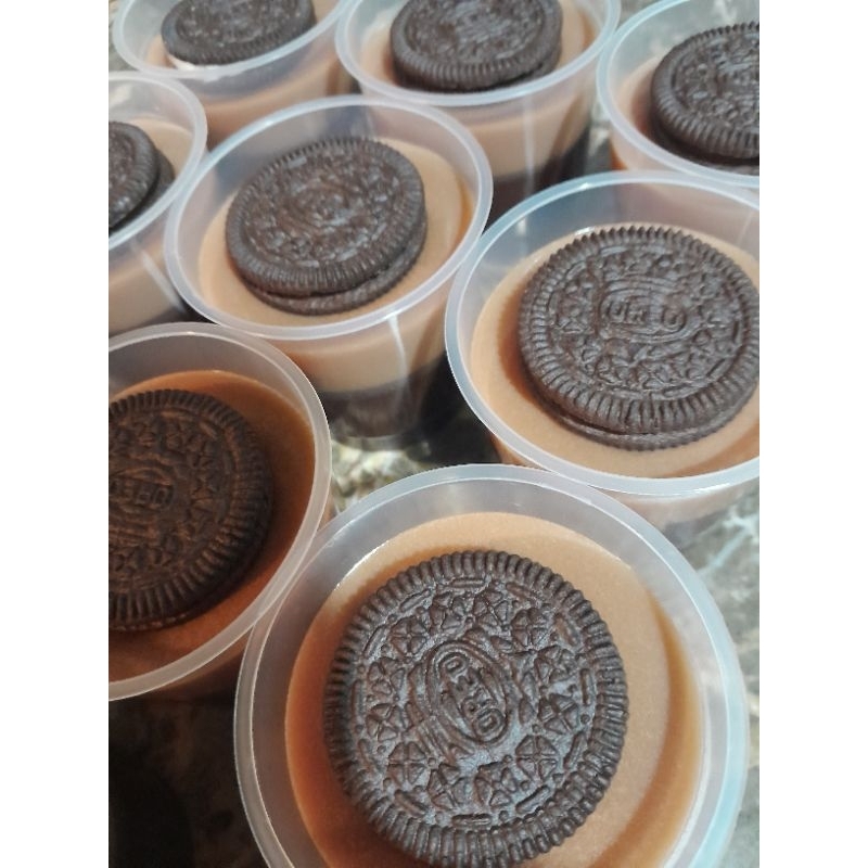 Pudding susu rasa coklat oreo.