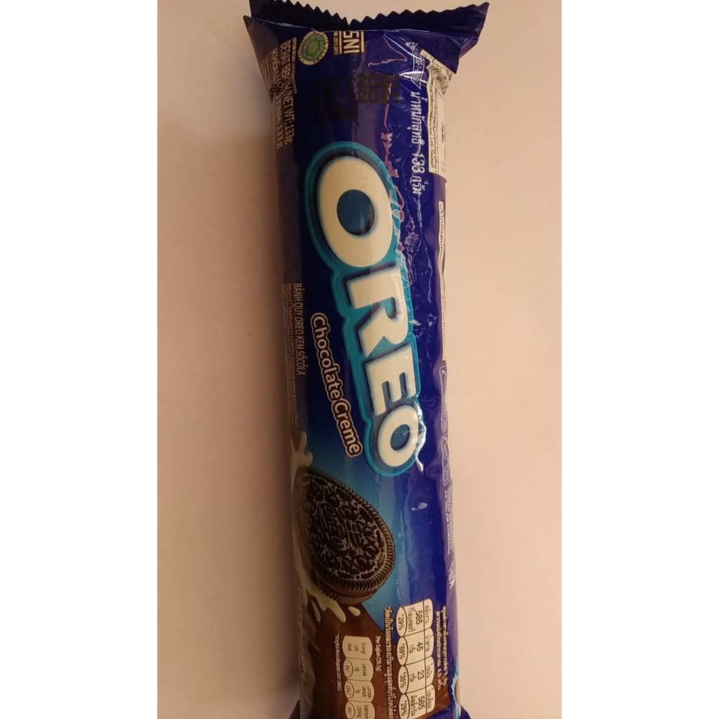 Biskuit sandwich coklat dengan krim rasa coklat.