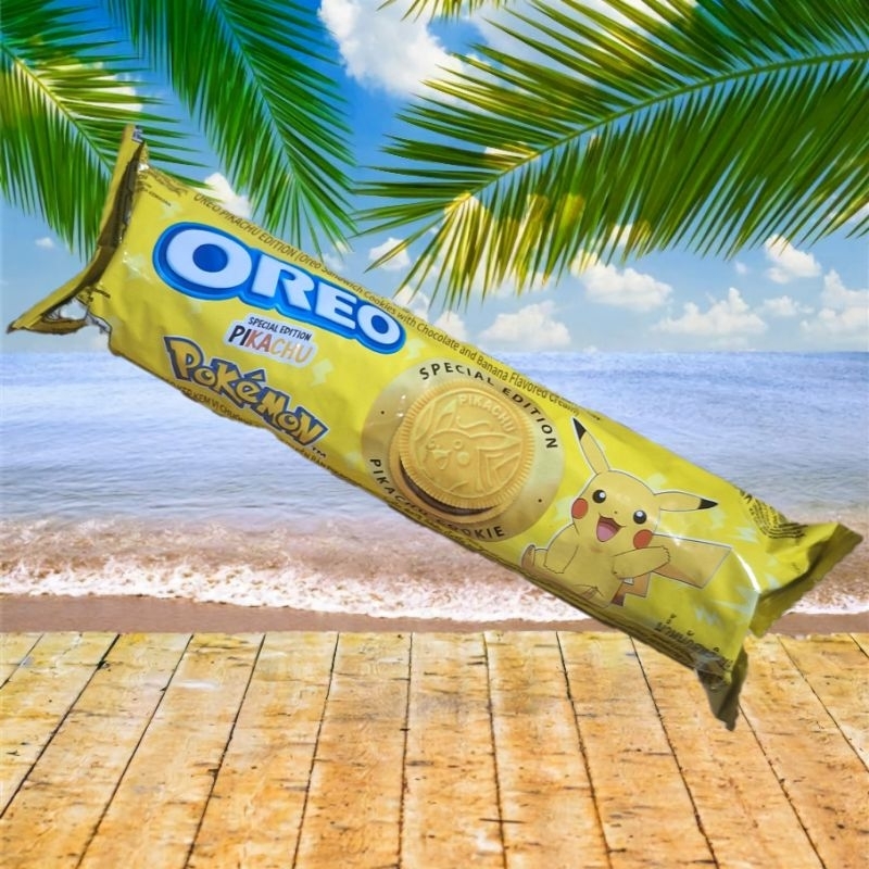 Oreo telah berkolaborasi dengan Pokémon untuk menghadirkan edisi spesial biskuit dengan tema karakter Pokémon. Salah satu varian yang ditawarkan adalah Oreo Pikachu Cookies dengan rasa cokelat pisang. Biskuit ini memiliki keping berwarna kuning dengan aroma pisang dan krim berperisa cokelat pisang, menciptakan kombinasi rasa yang unik dan lezat.