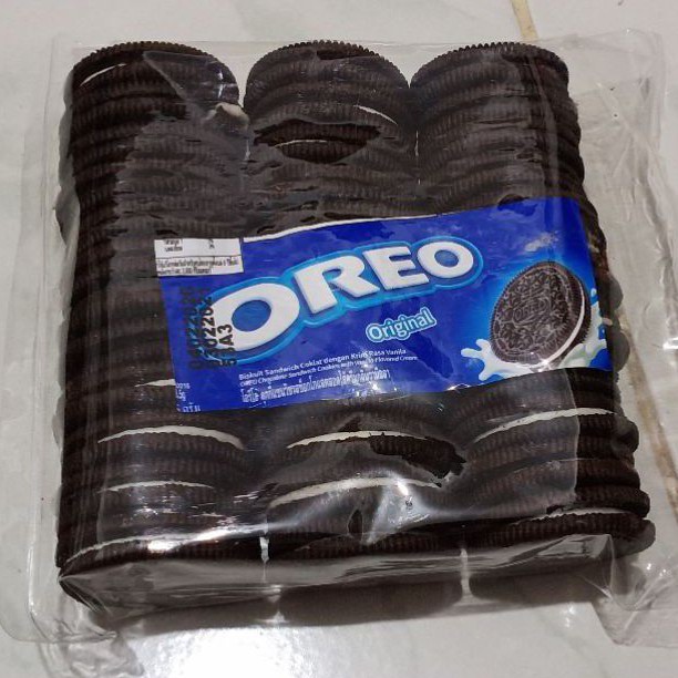 Biskuit oreo original yang dikemas ulang dengan berat 330 gram.