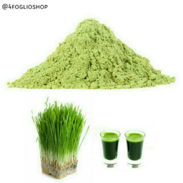 Terbuat dari daun rumput gandum yang dikeringkan dan digiling menjadi serbuk Lebih praktis dalam penggunaannya dan tidak menghilangkan nutrisi sehingga setara dengan mengkonsumsi rumput gandum segar, produk import.