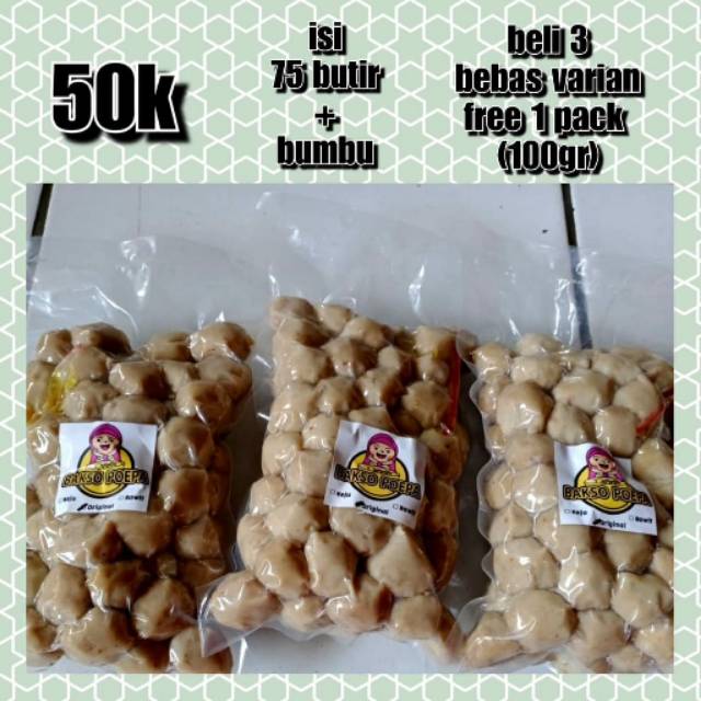 Bakso Poepa kemasan ekonomis, harga 50rb isi 75 butir baso