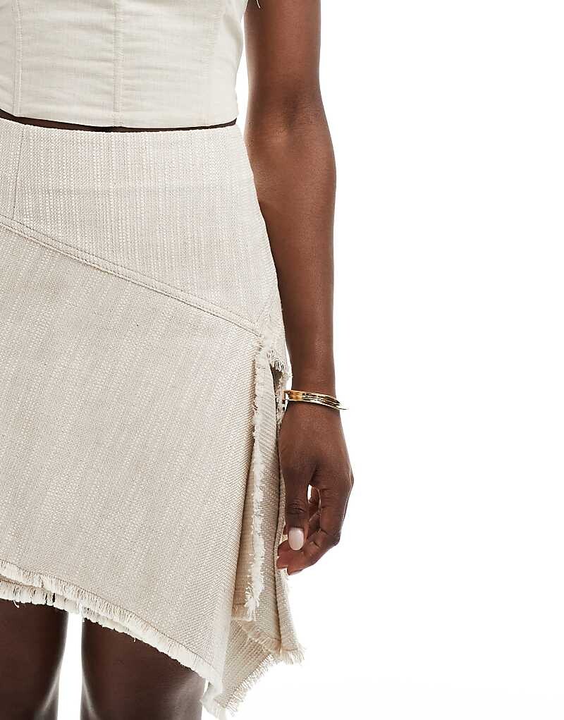 & Other Stories – Мини-юбка светло-бежевого цвета из льна с асимметричной бахромой по низу