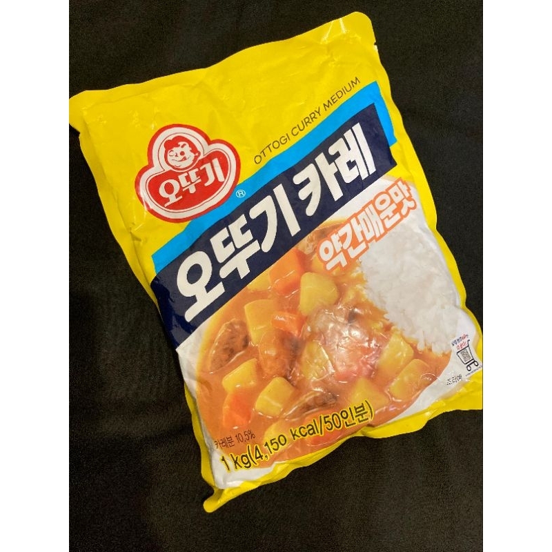 Bubuk kari merk ottogi dengan tingkat kepedasan medium.