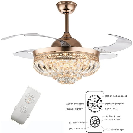 Oukaning 42 Crystal Fan Chandelier Invisible Ceiling Fan Light+Remote