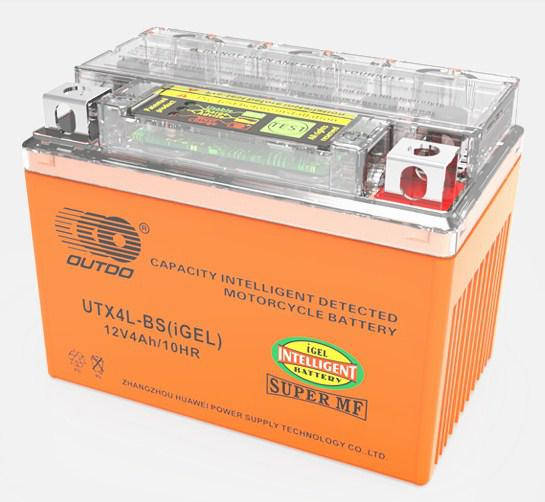 Мото аккумулятор OUTDO YTX4L-BS 12V 4А гелевый, 114x71x88, оранжевый, с индикатором заряда