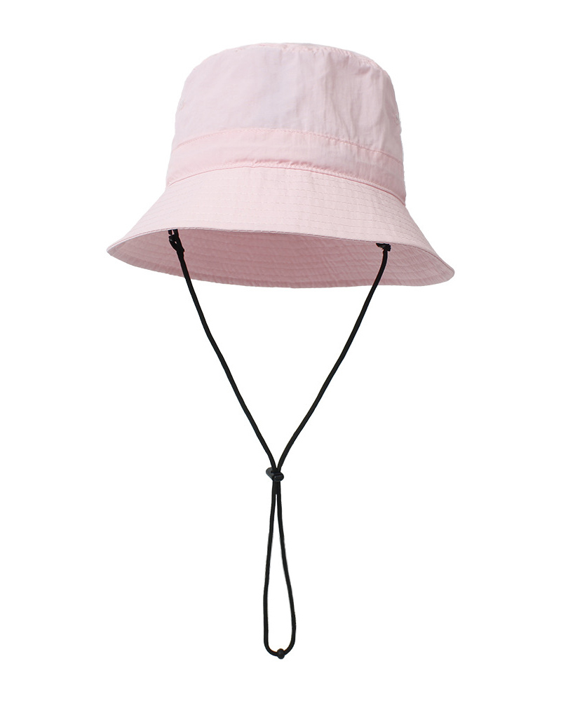 Outdoor Bucket Sun Protect Hat With Adjustable Drawstring, Pink