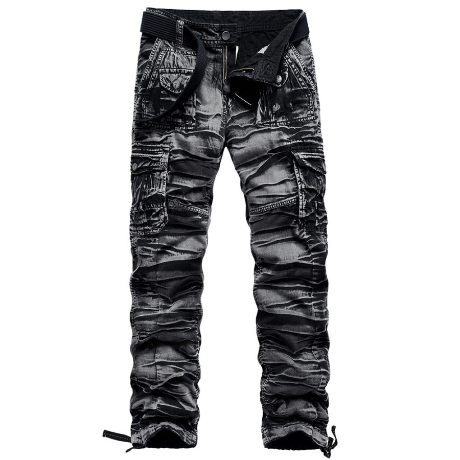tactical pants,outdoor multi-pouch washed straight overalls