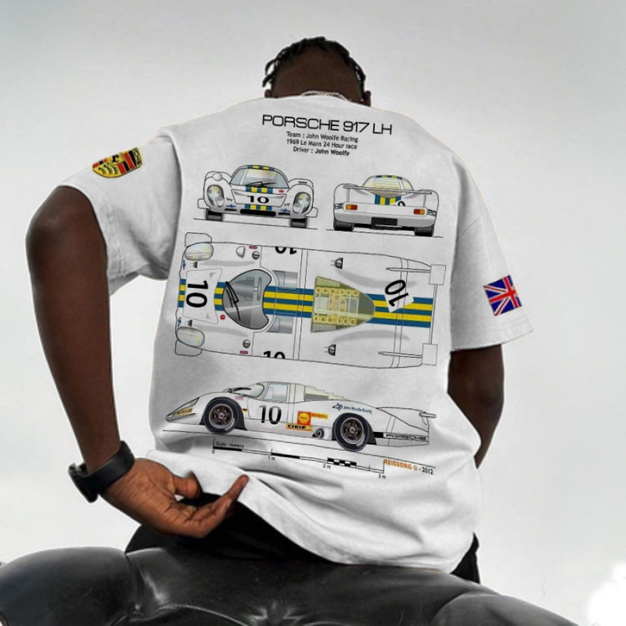 Oversized Men's Racing Print Short Sleeve T-Shirt