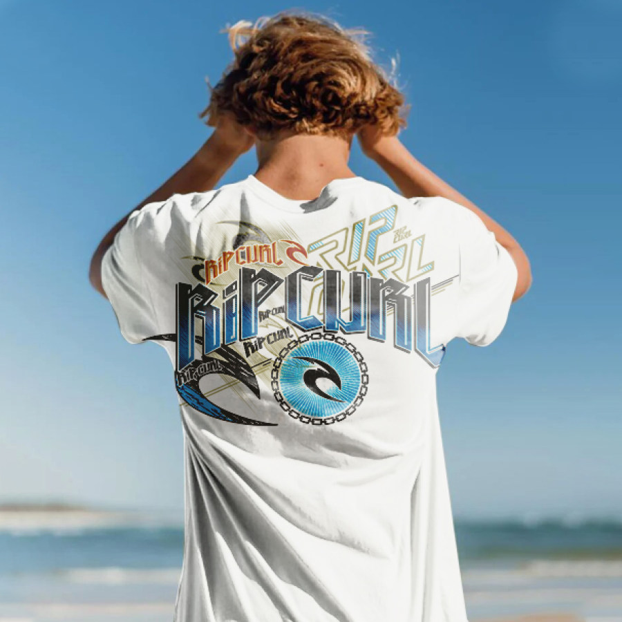 Oversized Men's Ripcurl Deshin Surf Print Beach Resort T-Shirt