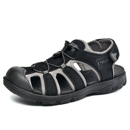 Men s Sandals Summer Outdoor Hiking Sandals Leather Closed Toe Fisherman Beach Sandal For Men Slip on Big Size US 10.5