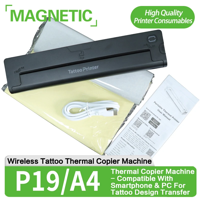 P19 A4 Wireless Tattoo Stencil Printer Tattoo Thermal Copier Machine-Compatible with Smartphone & PC For Tattoo Design Transfer