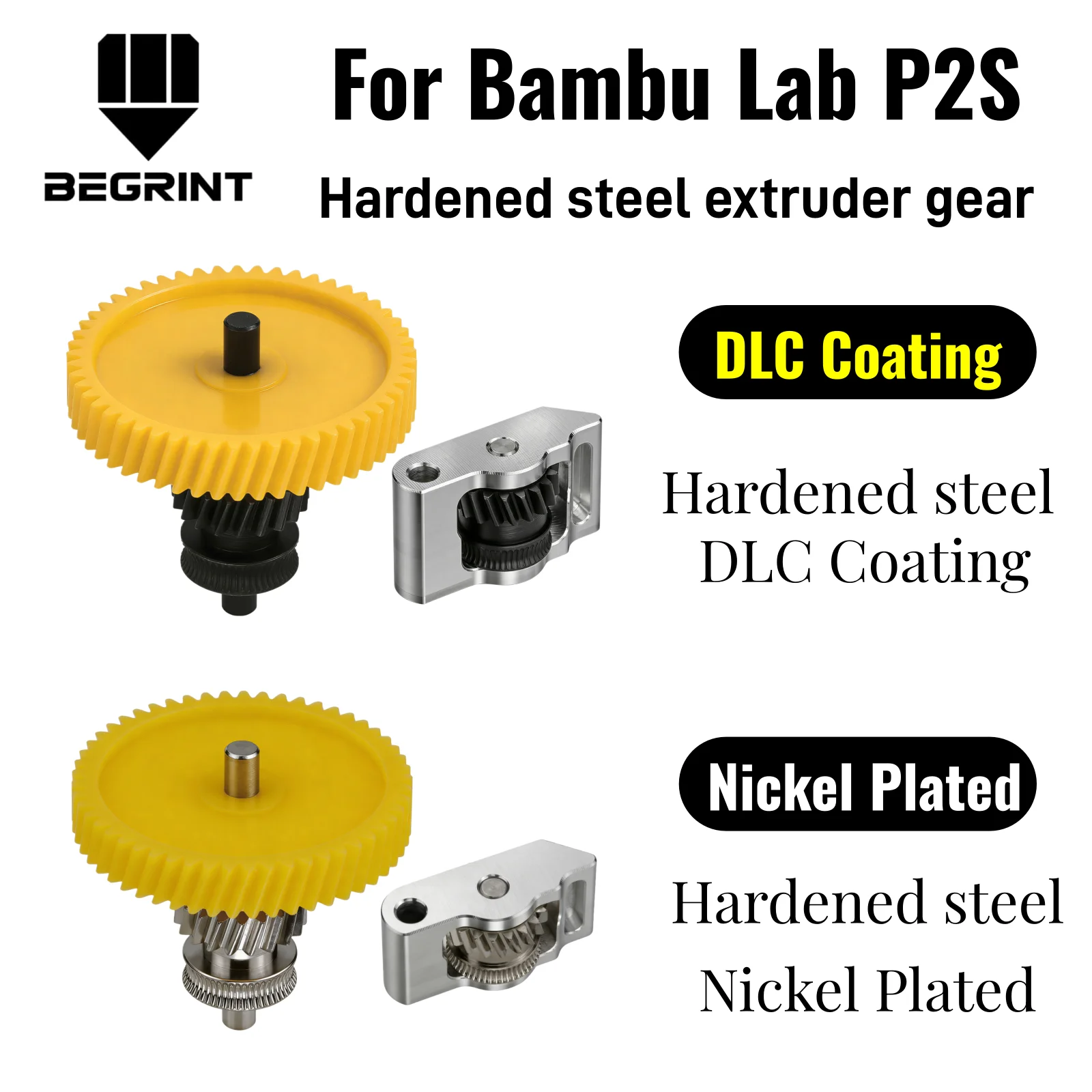 P2S Extruder Upgrade DLC Coating Hardened Steel Extruder Gear Assembly For Bambu Lab P2S 3D Printer Nickel Plated Wear-resisting