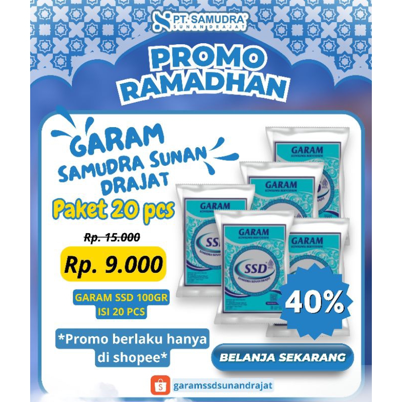 Garam SSD Merupakan garam konsumsi beryodium yang di produksi oleh santri/murid PP Sunan Drajat Lamongan Jawa Timur
