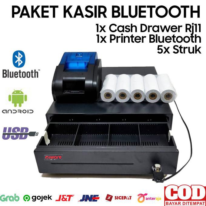 PAKET ALAT KASIR ANDROID BLUETOOTH (CASH DRAWER+PRINTER+KERTAS)