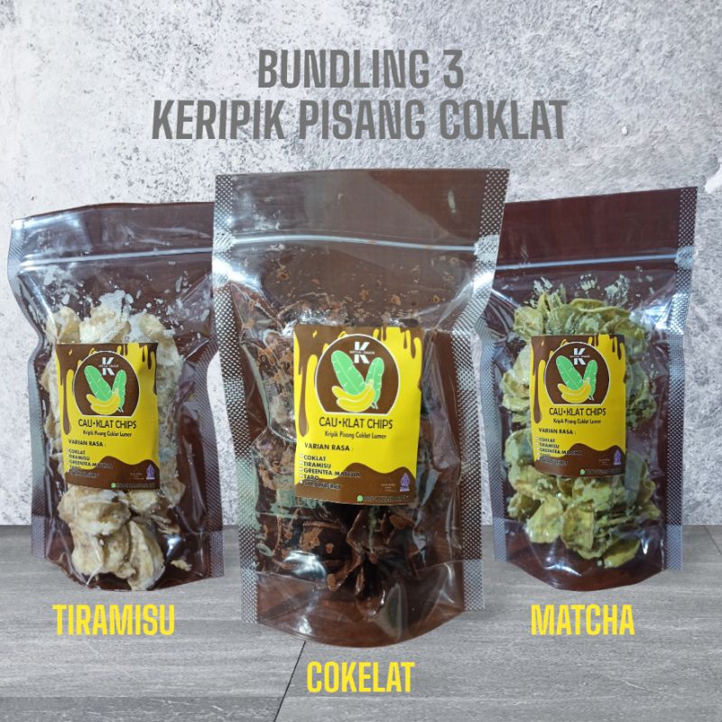 Paket Keripik coklat pisang lumer 3 varian rasa.