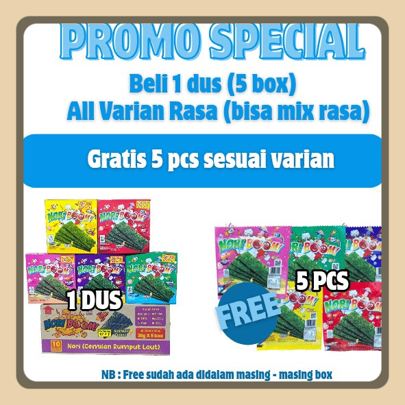 PAKET HEMAT NORI BOOM 5 RASA - 1 DUS ( FREE 5 PCS )