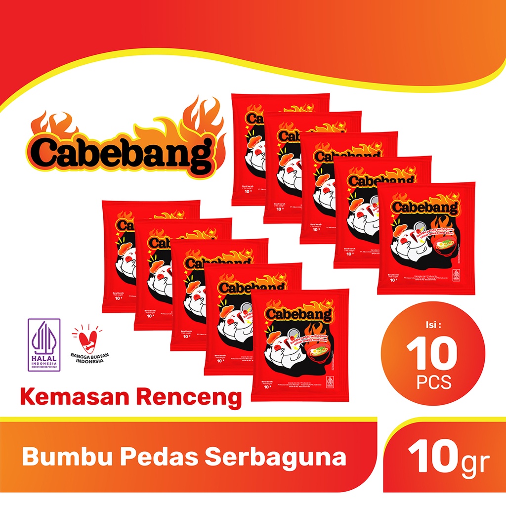 Bumbu Pedas Serbaguna CABEBANG , praktis & mudah digunakan untuk semua jenis masakan. Perpaduan antara rasa pedas & gurihnya membuat masakan menjadi lebih lezat.