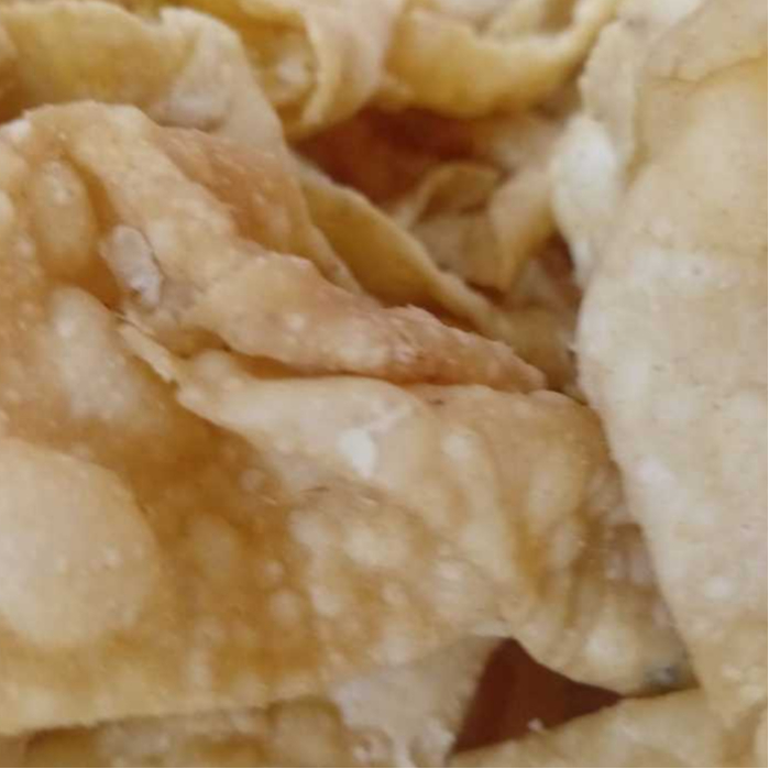 Pangsit goreng merupakan camilan yang banyak diminati karena rasanya yang gurih, renyah dan enak. Perpaduan rasa gurih dan asin menjadikan rasanya lebih nikmat. Pangsit goreng merupakan camilan yang populer di berbagai kalangan, karena selain enak, juga mudah ditemukan dan memiliki harga yang terjangkau. Juga terjamin anyar/baru dan dijamin HALAL.