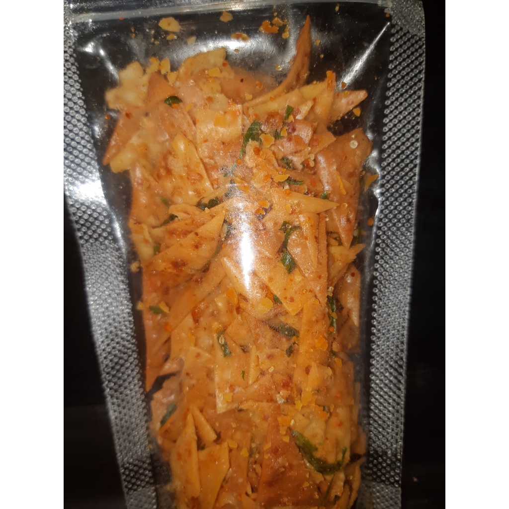 ini HOME MADE yaaa terbuat dari pangsit goreng dengan rasa khas GURIH (ada pedesnya sedikit) buat kamu yang ga suka pedasss ini bisa kamu cobain jugaaa.. buat kamu pecinta pedass bisa cobain juga karna wangi banget sama daun jeruknya . Bertahan 2-5 hr gaess TENANG AJA !! Yummmyyyy bangett !!!