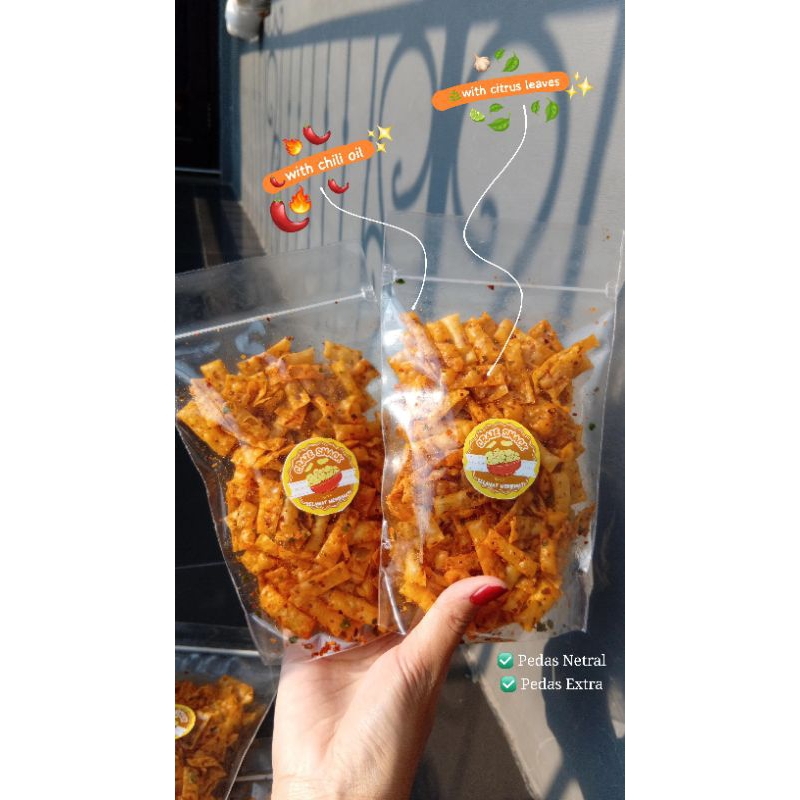 pangsit pedas kriuk rasa daun jeruk dengan paduan chili oil dan rasa yang gurih