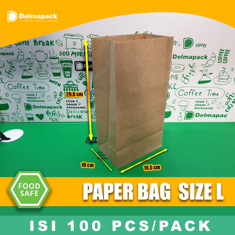 PAPER BAG KANTONG KERTAS ( L ) / KANTONG ROTI, FRIED CHICKEN, SNACK - 100 PCS
